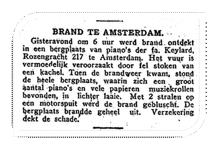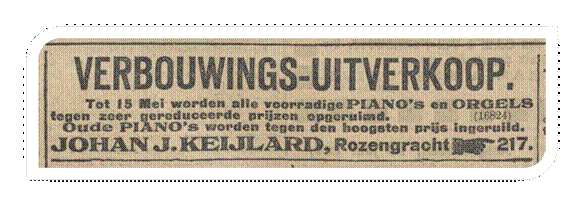 Later werkte hij in een pianozaak op de Rozengracht 217, alwaar hij ook de