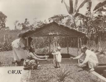 Greet, Wim en Cor voor het huis in Parnabolon, juni 1928