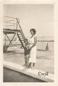 Cor en haar dochter bij de springplank, dochter op de lage,