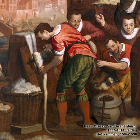 Maar heus niet alleen in de stegen met zulke veelbetekenende namen kwamen de Leidse werkers en werksters in de textiel te wonen. De Leidse belastinglijst van 1497 geeft van veel gezinshoofden de beroepen. Overal in de stad, maar meestal in achterafsteegjes, woonden de wevers, kamsters en spinsters. Zij vormden het grote leger van Leienaars waarover de drapeniers de generaals waren. Het weefgetouw, de kam en het spinrokken of het spinnewiel beheersten hun leven, waarin de armoede en de behoeftigheid schering en inslag waren.